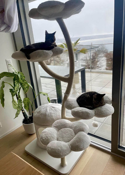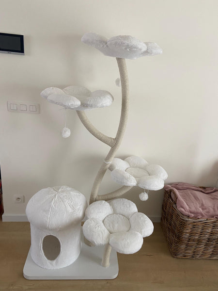 Amélie customized the tree exactly how I pictured it. The flowers are bright and soft, and the structure feels stable. My cat spends hours on it. Delivery was a little slow.